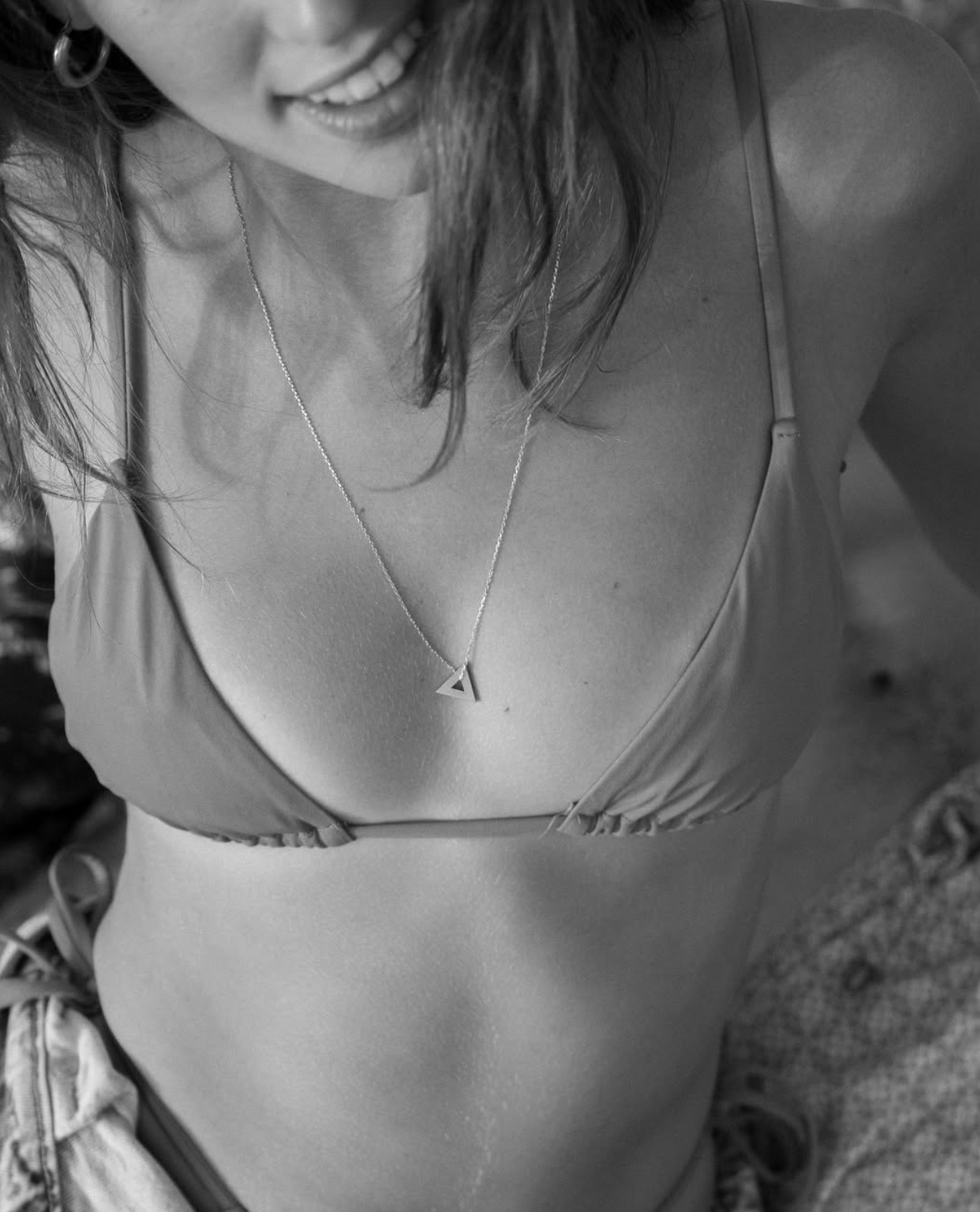The small triangle necklace has been expertly crafted in Istanbul from sterling silver that's brushed on both sides. The triangle pendant is engraved with somethingaboutus logo - and strung on a thin chain.